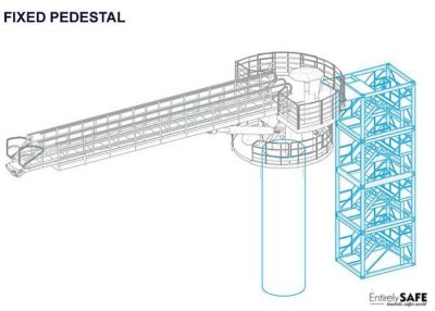 The gangway can be fitted on a height-adjustable pedestal with an integrated elevator, making it possible to land on any height and maintain a continuous workflow.