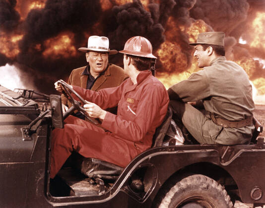 Along the way Red-met John Wayne and in 1967 they made ‘The Hellfighters’. This too needed Red on hand – not as a technical advisor but as a fireman. Filming a controlled fire early one morning it got out of hand igniting a large part of the set and Adair had to go into action – Wayne astutely rolled the cameras to add another exciting firefighting sequence to the movie (with his close-ups cut in naturally).