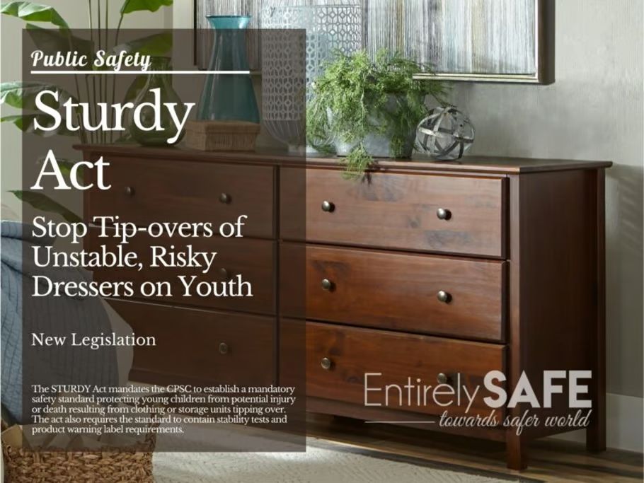 The STURDY Act, which is an acronym for “Stop Tip-overs of Unstable, Risky Dressers on Youth”, was signed into law to require the CPSC to establish a mandatory safety standard to protect young children from injurious or fatal circumstances related to clothing storage units tipping over due to their potential instability.