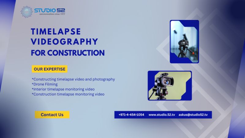 Want to turn your project progress into a compelling visual story? Construction timelapse videos by studio52 is the best choice in Dubai , delivering professional time lapse video production Dubai for construction, interiors, and large developments. Our skilled timelapse production team captures every stage with precision, along with full-site monitoring and drone filming. From foundation to final finish, we captures every milestone with expert time lapse video production Dubai. Your project is more than just construction โ itโs a journey worth showcasing. Make your project cinematic with us. ๐ Call Us Today: +971-4-454-1054 ๐ง Email Us: askus@studio52.tv